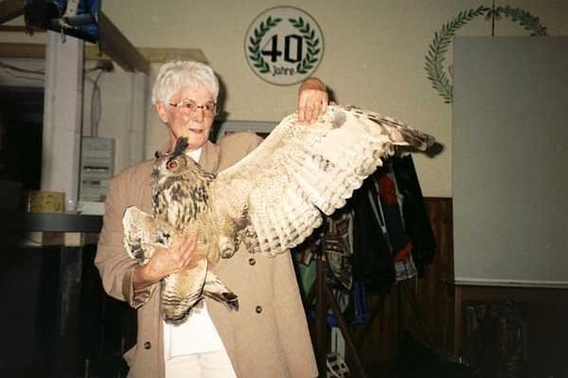 2001 - Frau Steffens von der Wildvogelpflegestation Kirchwald, die wir in jenem Jahr zu ersten Mal unterstützten - Mrs Steffens who is running the wild bird care center which we supported for the first time that year