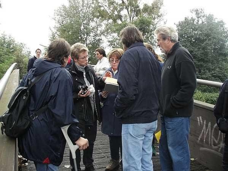 2005 - Auf einer Ahrbrücke - Gabi erklärt eine Schnitzeljagdaufgabe --